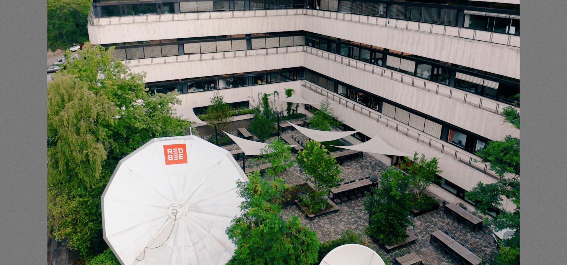 The entrance of the NOS (Dutch broadcasting company) building in Hilversum was marked by a stoney heat island. For both employees and visitors, shade would be a welcome addition to the building experience, but as the square also is the top floor of the parking deck and functions as multifunctional event space, weight constraints and required flexibility limited the options for greening the space. By using our Jungle Blocks, we've realised a lightweight and movable forest on the square, offering an inspiring place to enjoy a coffee break, meeting or TV recording in the shade.